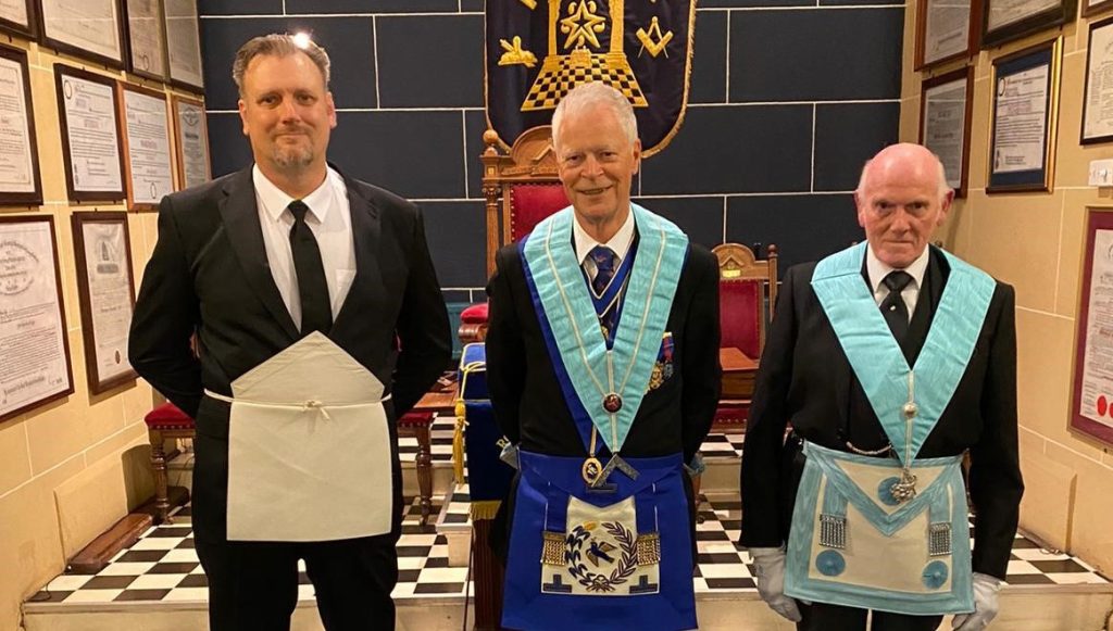 Chris, a serving officer with Kent police enjoyed a wonderful evening of fun and fellowship during his initiation. Steve also took part in his ceremony by presenting the working tools of an entered apprentice freemason to Chris during the ceremony.