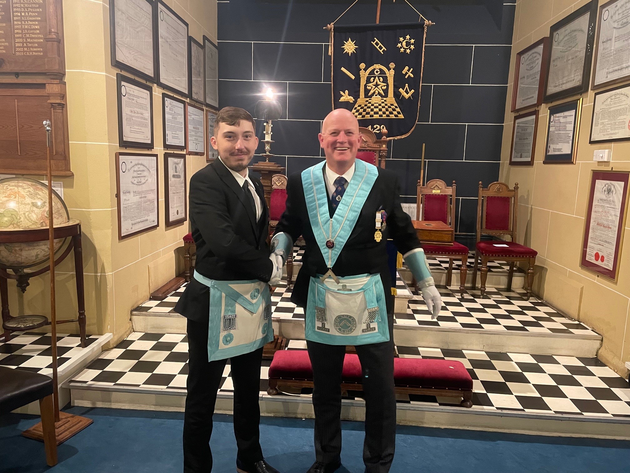 Our November saw a new first for Royal Navy Lodge with Paddy Clarke taking his third step and becoming Royal Navy lodges youngest ever Master Mason